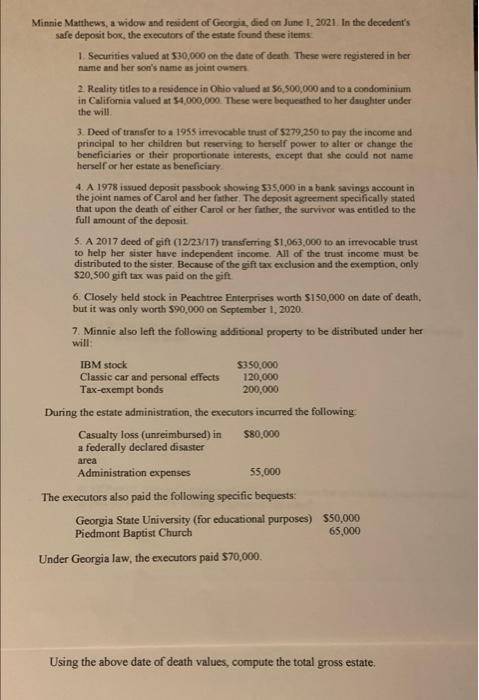 Solved Minnie Matthews A Widow And Resident Of Georgia Chegg Com